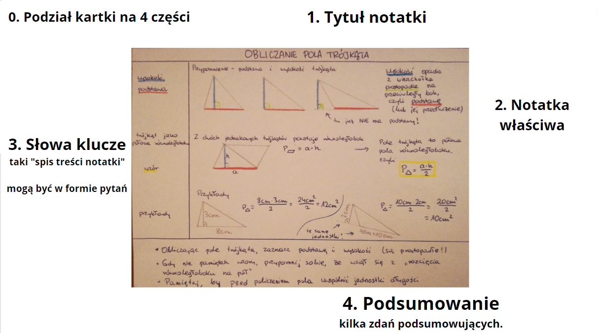 - słowa klucze/hasła – dzięki nim notatka będzie krótka i zwięzła